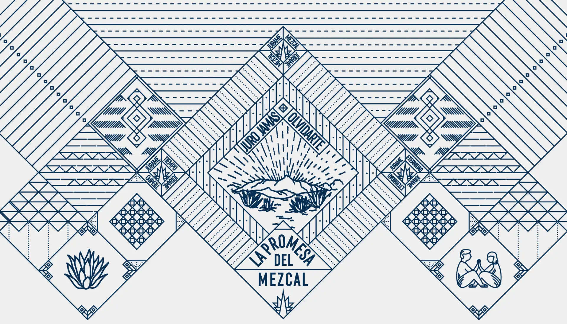 In the early 20th century, after the storm of the Mexican revolution, papel picado was becoming a popular craft, art deco buildings were popping up across the country, and the music of Maria Grever delighted listeners everywhere. It is one of her songs, Júrame, that is behind the name of this mezcal. The geometry of Mexican craftwork, the papel picado, and the elegant grace of art-deco buildings inspired the visual identity of this brand.